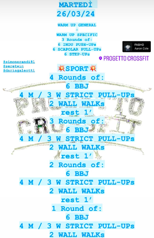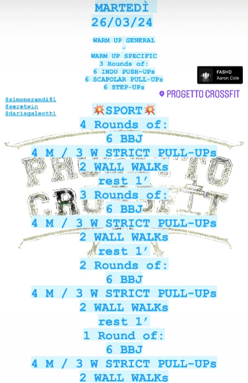 Pubblicato daprogettocrossfit26 marzo 20241 aprile 2024Pubblicato in: Wod Condividi: Fai clic per condividere su X (Si apre in una nuova finestra) X Fai clic per condividere su Facebook (Si apre in una nuova finestra) Facebook Mi piace Caricamento... Correlati