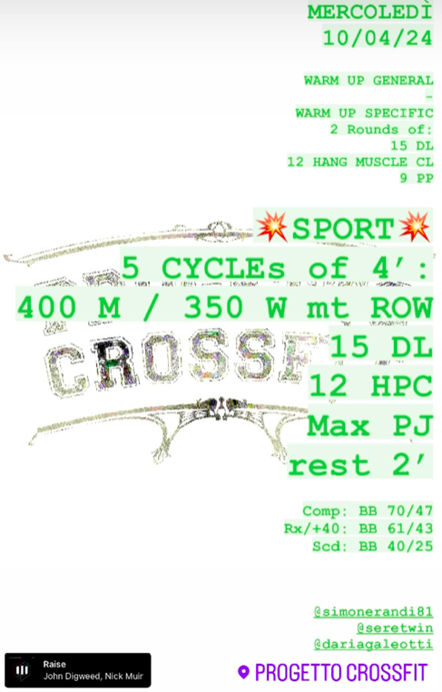 Pubblicato daprogettocrossfit10 aprile 20245 Maggio 2024Pubblicato in: Wod Condividi: Fai clic per condividere su X (Si apre in una nuova finestra) X Fai clic per condividere su Facebook (Si apre in una nuova finestra) Facebook Mi piace Caricamento... Correlati