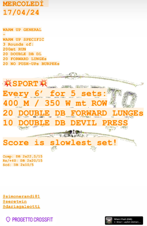 Pubblicato daprogettocrossfit17 aprile 20245 Maggio 2024Pubblicato in: Wod Condividi: Fai clic per condividere su X (Si apre in una nuova finestra) X Fai clic per condividere su Facebook (Si apre in una nuova finestra) Facebook Mi piace Caricamento... Correlati