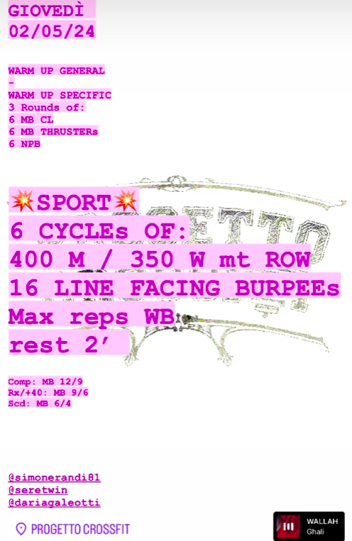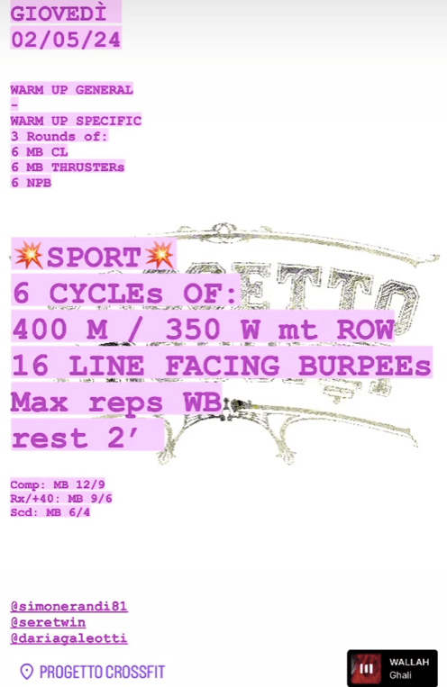 Pubblicato daprogettocrossfit2 Maggio 20245 Maggio 2024Pubblicato in: Wod Condividi: Fai clic per condividere su X (Si apre in una nuova finestra) X Fai clic per condividere su Facebook (Si apre in una nuova finestra) Facebook Mi piace Caricamento... Correlati