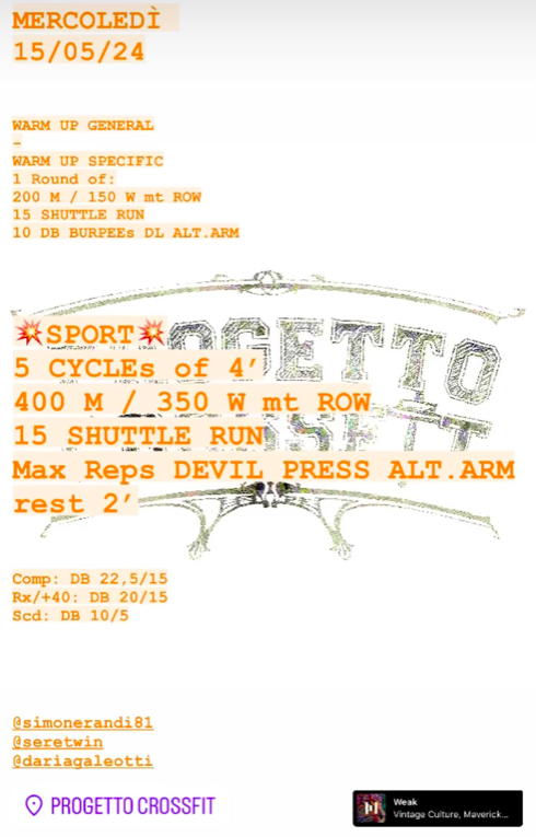 Pubblicato daprogettocrossfit15 Maggio 202426 Maggio 2024Pubblicato in: Wod Condividi: Fai clic per condividere su X (Si apre in una nuova finestra) X Fai clic per condividere su Facebook (Si apre in una nuova finestra) Facebook Mi piace Caricamento... Correlati