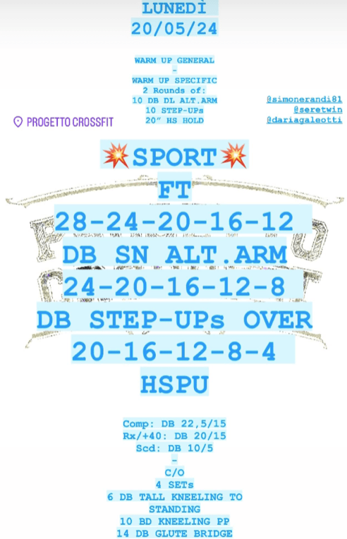 Pubblicato daprogettocrossfit20 Maggio 202426 Maggio 2024Pubblicato in: Wod Condividi: Fai clic per condividere su X (Si apre in una nuova finestra) X Fai clic per condividere su Facebook (Si apre in una nuova finestra) Facebook Mi piace Caricamento... Correlati
