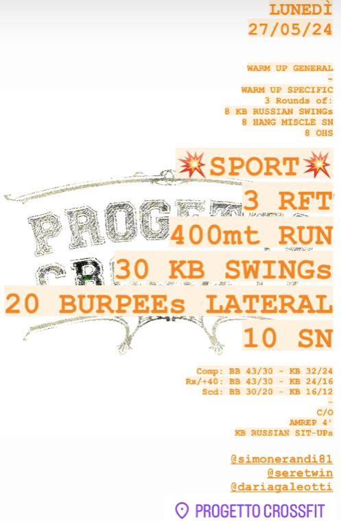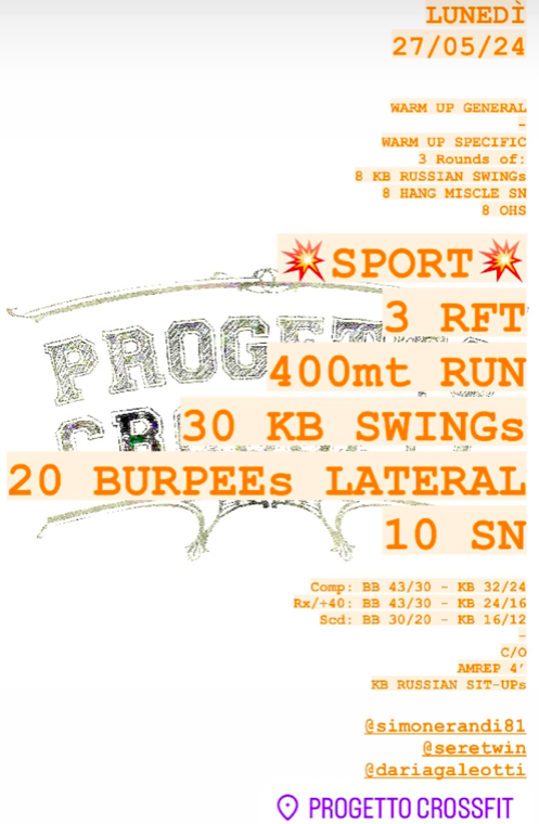Pubblicato daprogettocrossfit27 Maggio 20243 luglio 2024Pubblicato in: Wod Condividi: Fai clic per condividere su X (Si apre in una nuova finestra) X Fai clic per condividere su Facebook (Si apre in una nuova finestra) Facebook Mi piace Caricamento... Correlati