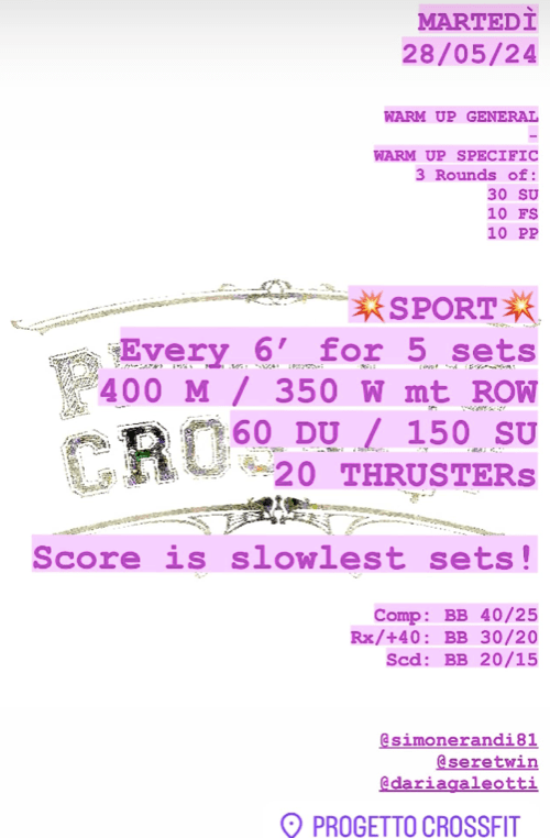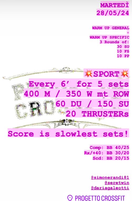 Pubblicato daprogettocrossfit28 Maggio 20243 luglio 2024Pubblicato in: Wod Condividi: Fai clic per condividere su X (Si apre in una nuova finestra) X Fai clic per condividere su Facebook (Si apre in una nuova finestra) Facebook Mi piace Caricamento... Correlati