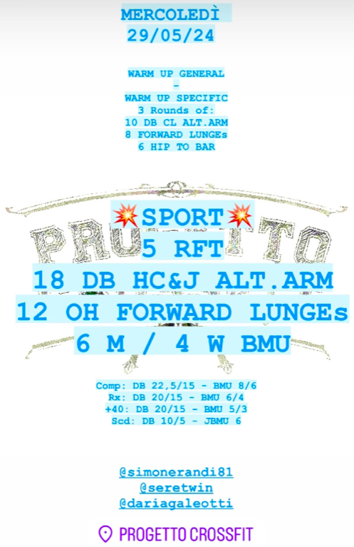 Pubblicato daprogettocrossfit29 Maggio 20243 luglio 2024Pubblicato in: Wod Condividi: Fai clic per condividere su X (Si apre in una nuova finestra) X Fai clic per condividere su Facebook (Si apre in una nuova finestra) Facebook Mi piace Caricamento... Correlati