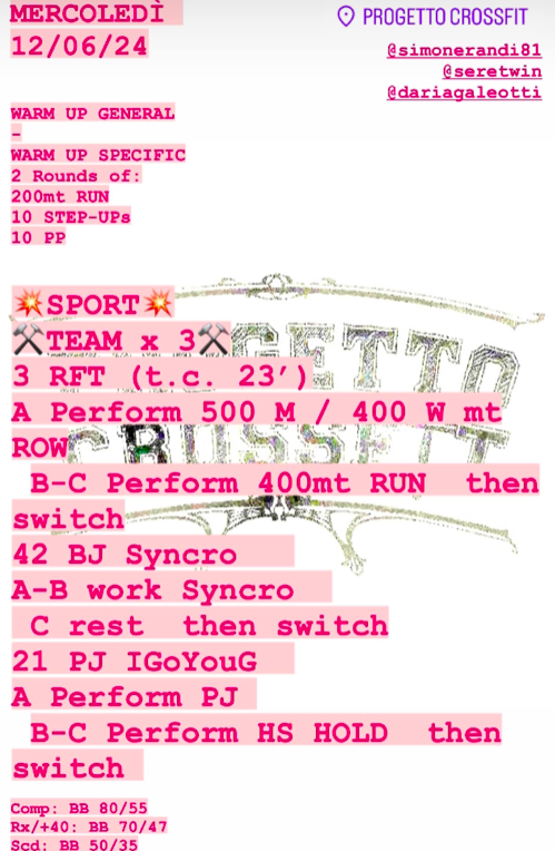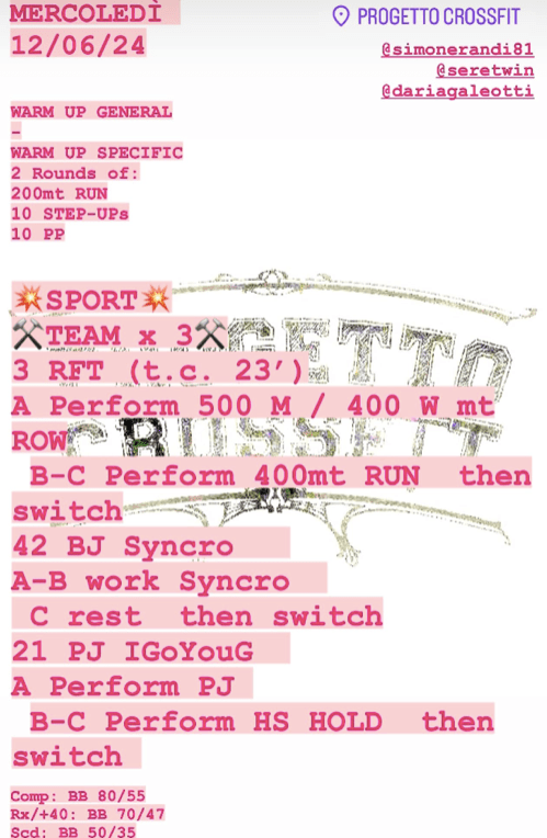 Pubblicato daprogettocrossfit12 giugno 20243 luglio 2024Pubblicato in: Wod Condividi: Fai clic per condividere su X (Si apre in una nuova finestra) X Fai clic per condividere su Facebook (Si apre in una nuova finestra) Facebook Mi piace Caricamento... Correlati
