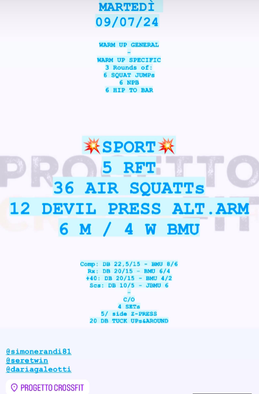 Pubblicato daprogettocrossfit9 luglio 202431 luglio 2024Pubblicato in: Wod Condividi: Fai clic per condividere su X (Si apre in una nuova finestra) X Fai clic per condividere su Facebook (Si apre in una nuova finestra) Facebook Mi piace Caricamento... Correlati