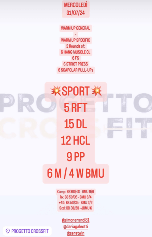 Pubblicato daprogettocrossfit31 luglio 202420 agosto 2024Pubblicato in: Wod Condividi: Fai clic per condividere su X (Si apre in una nuova finestra) X Fai clic per condividere su Facebook (Si apre in una nuova finestra) Facebook Mi piace Caricamento... Correlati