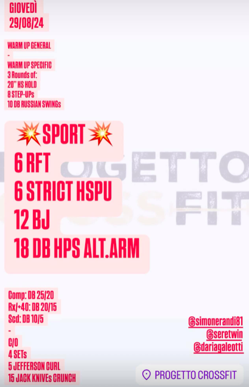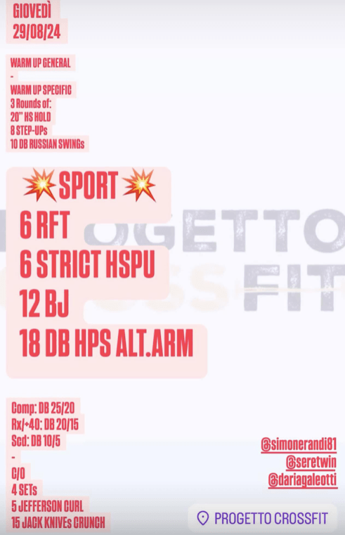 Pubblicato daprogettocrossfit29 agosto 202425 settembre 2024Pubblicato in: Wod Condividi: Fai clic per condividere su X (Si apre in una nuova finestra) X Fai clic per condividere su Facebook (Si apre in una nuova finestra) Facebook Mi piace Caricamento... Correlati