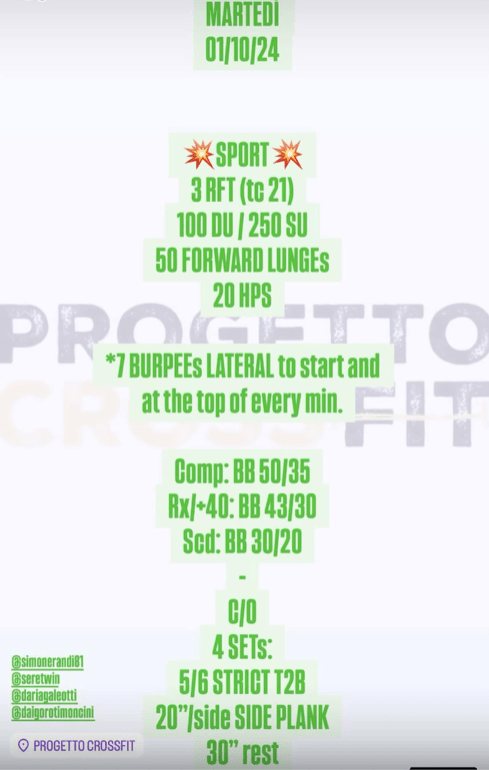Pubblicato daprogettocrossfit1 ottobre 20249 ottobre 2024Pubblicato in: Wod Condividi: Fai clic per condividere su X (Si apre in una nuova finestra) X Fai clic per condividere su Facebook (Si apre in una nuova finestra) Facebook Mi piace Caricamento... Correlati