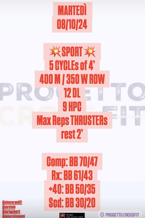 Pubblicato daprogettocrossfit8 ottobre 20249 ottobre 2024Pubblicato in: Wod Condividi: Fai clic per condividere su X (Si apre in una nuova finestra) X Fai clic per condividere su Facebook (Si apre in una nuova finestra) Facebook Mi piace Caricamento... Correlati