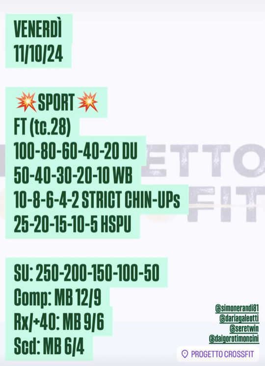Pubblicato daprogettocrossfit11 ottobre 202431 ottobre 2024Pubblicato in: Wod Condividi: Fai clic per condividere su X (Si apre in una nuova finestra) X Fai clic per condividere su Facebook (Si apre in una nuova finestra) Facebook Mi piace Caricamento... Correlati