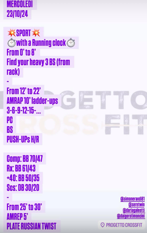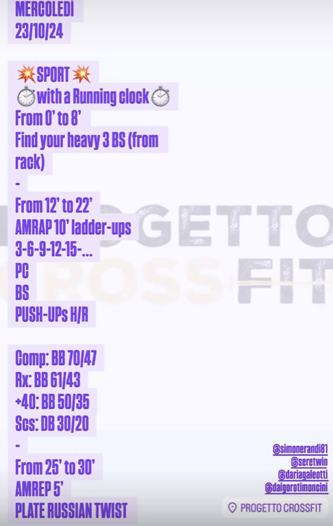 Pubblicato daprogettocrossfit23 ottobre 202431 ottobre 2024Pubblicato in: Wod Condividi: Fai clic per condividere su X (Si apre in una nuova finestra) X Fai clic per condividere su Facebook (Si apre in una nuova finestra) Facebook Mi piace Caricamento... Correlati