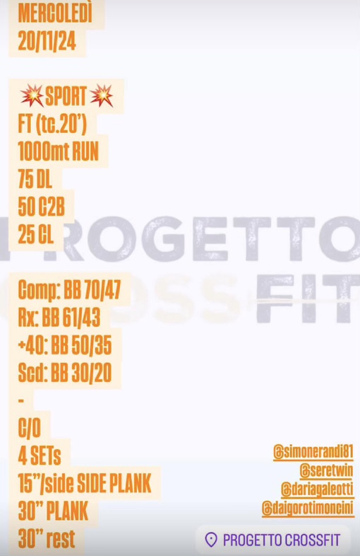 Pubblicato daprogettocrossfit20 novembre 202428 novembre 2024Pubblicato in: Wod Condividi: Fai clic per condividere su X (Si apre in una nuova finestra) X Fai clic per condividere su Facebook (Si apre in una nuova finestra) Facebook Mi piace Caricamento... Correlati
