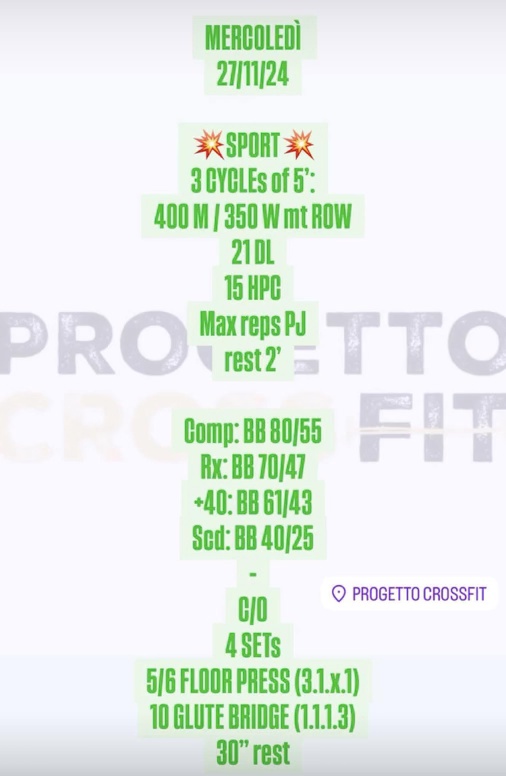 Pubblicato daprogettocrossfit27 novembre 202428 novembre 2024Pubblicato in: Wod Condividi: Fai clic per condividere su X (Si apre in una nuova finestra) X Fai clic per condividere su Facebook (Si apre in una nuova finestra) Facebook Mi piace Caricamento... Correlati
