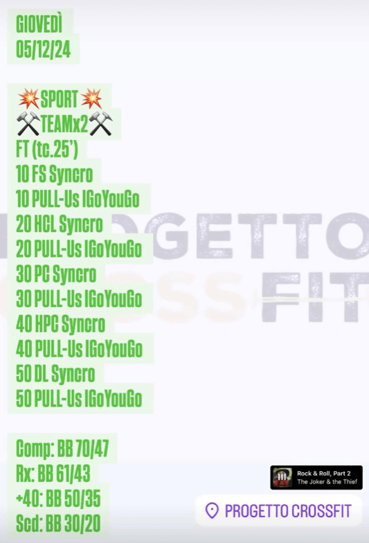 Pubblicato daprogettocrossfit5 dicembre 202430 dicembre 2024Pubblicato in: Wod Condividi: Fai clic per condividere su X (Si apre in una nuova finestra) X Fai clic per condividere su Facebook (Si apre in una nuova finestra) Facebook Mi piace Caricamento... Correlati