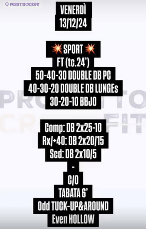 Pubblicato daprogettocrossfit13 dicembre 202430 dicembre 2024Pubblicato in: Wod Condividi: Fai clic per condividere su X (Si apre in una nuova finestra) X Fai clic per condividere su Facebook (Si apre in una nuova finestra) Facebook Mi piace Caricamento... Correlati
