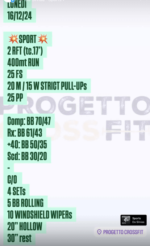 Pubblicato daprogettocrossfit16 dicembre 202430 dicembre 2024Pubblicato in: Wod Condividi: Fai clic per condividere su X (Si apre in una nuova finestra) X Fai clic per condividere su Facebook (Si apre in una nuova finestra) Facebook Mi piace Caricamento... Correlati