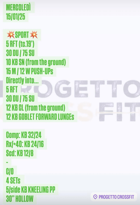 Pubblicato daprogettocrossfit15 gennaio 202512 febbraio 2025Pubblicato in: Wod Condividi: Fai clic per condividere su X (Si apre in una nuova finestra) X Fai clic per condividere su Facebook (Si apre in una nuova finestra) Facebook Mi piace Caricamento... Correlati