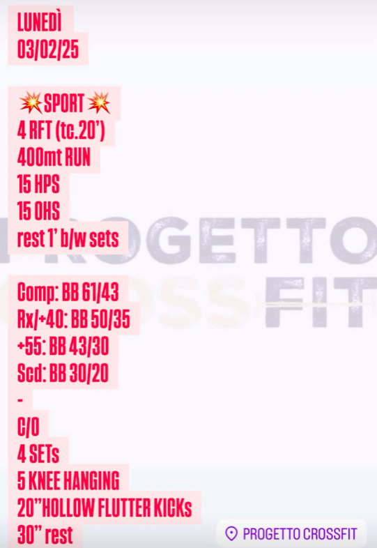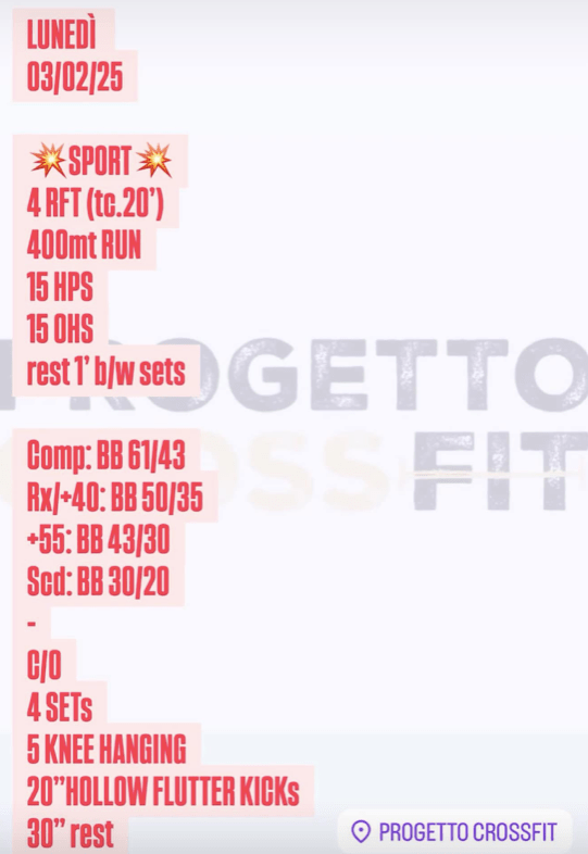 Pubblicato daprogettocrossfit3 febbraio 202512 febbraio 2025Pubblicato in: Wod Condividi: Fai clic per condividere su X (Si apre in una nuova finestra) X Fai clic per condividere su Facebook (Si apre in una nuova finestra) Facebook Mi piace Caricamento... Correlati