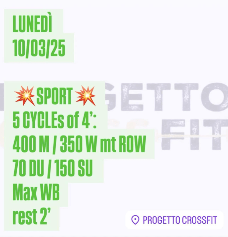 Pubblicato daprogettocrossfit10 marzo 202515 marzo 2025Pubblicato in: Wod Condividi: Fai clic per condividere su X (Si apre in una nuova finestra) X Fai clic per condividere su Facebook (Si apre in una nuova finestra) Facebook Mi piace Caricamento... Correlati