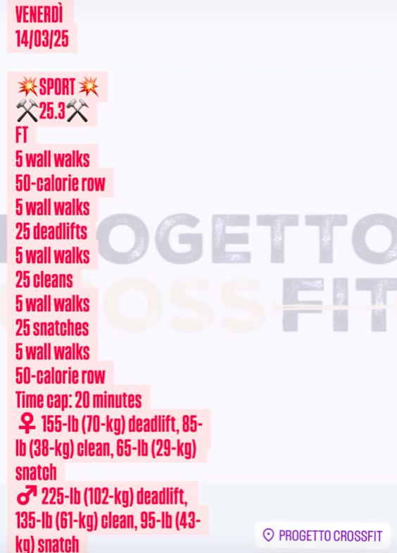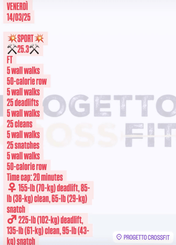 Pubblicato daprogettocrossfit14 marzo 202515 marzo 2025Pubblicato in: Wod Condividi: Fai clic per condividere su X (Si apre in una nuova finestra) X Fai clic per condividere su Facebook (Si apre in una nuova finestra) Facebook Mi piace Caricamento... Correlati