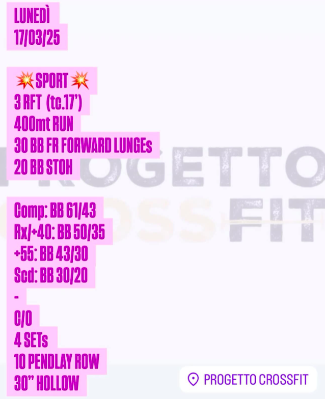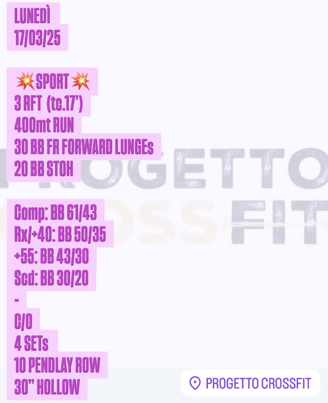 Pubblicato daprogettocrossfit17 marzo 20257 aprile 2025Pubblicato in: Wod Condividi: Fai clic per condividere su X (Si apre in una nuova finestra) X Fai clic per condividere su Facebook (Si apre in una nuova finestra) Facebook Mi piace Caricamento... Correlati