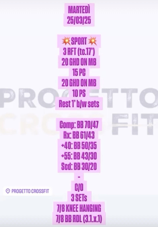 Pubblicato daprogettocrossfit25 marzo 20257 aprile 2025Pubblicato in: Wod Condividi: Fai clic per condividere su X (Si apre in una nuova finestra) X Fai clic per condividere su Facebook (Si apre in una nuova finestra) Facebook Mi piace Caricamento... Correlati