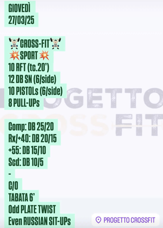 Pubblicato daprogettocrossfit27 marzo 20257 aprile 2025Pubblicato in: Wod Condividi: Fai clic per condividere su X (Si apre in una nuova finestra) X Fai clic per condividere su Facebook (Si apre in una nuova finestra) Facebook Mi piace Caricamento... Correlati