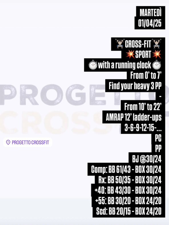 Pubblicato daprogettocrossfit1 aprile 20257 aprile 2025Pubblicato in: Wod Condividi: Fai clic per condividere su X (Si apre in una nuova finestra) X Fai clic per condividere su Facebook (Si apre in una nuova finestra) Facebook Mi piace Caricamento... Correlati