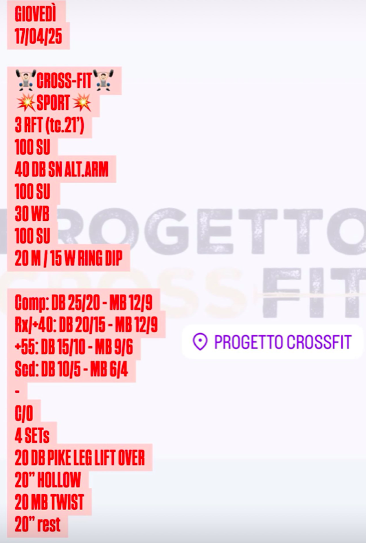 Pubblicato daprogettocrossfit17 aprile 202522 aprile 2025Pubblicato in: Wod Condividi: Fai clic per condividere su X (Si apre in una nuova finestra) X Fai clic per condividere su Facebook (Si apre in una nuova finestra) Facebook Mi piace Caricamento... Correlati