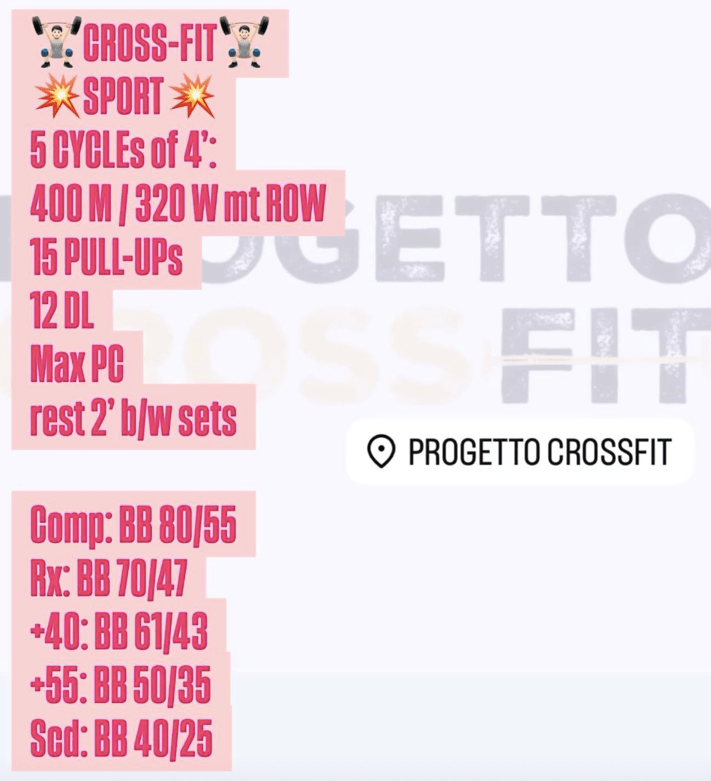 Pubblicato daprogettocrossfit24 aprile 20257 giugno 2025Pubblicato in: Wod Condividi: Fai clic per condividere su X (Si apre in una nuova finestra) X Fai clic per condividere su Facebook (Si apre in una nuova finestra) Facebook Mi piace Caricamento... Correlati