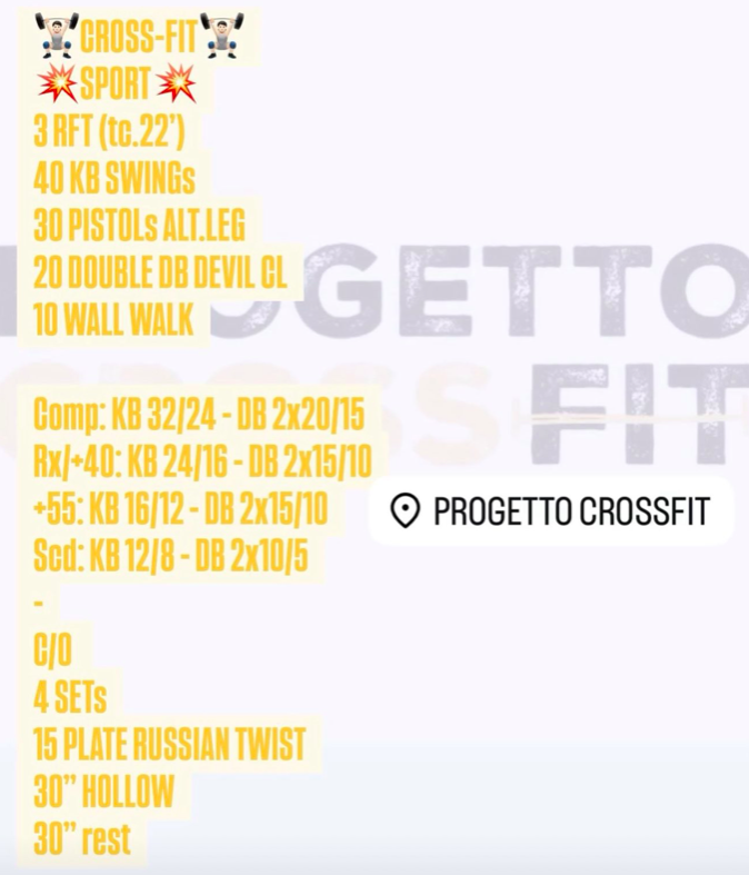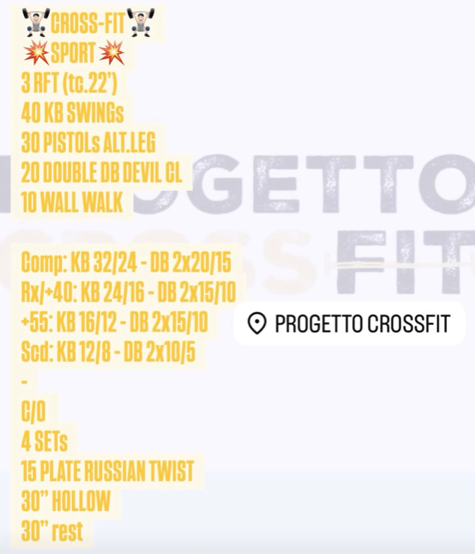 Pubblicato daprogettocrossfit25 aprile 20257 giugno 2025Pubblicato in: Wod Condividi: Fai clic per condividere su X (Si apre in una nuova finestra) X Fai clic per condividere su Facebook (Si apre in una nuova finestra) Facebook Mi piace Caricamento... Correlati
