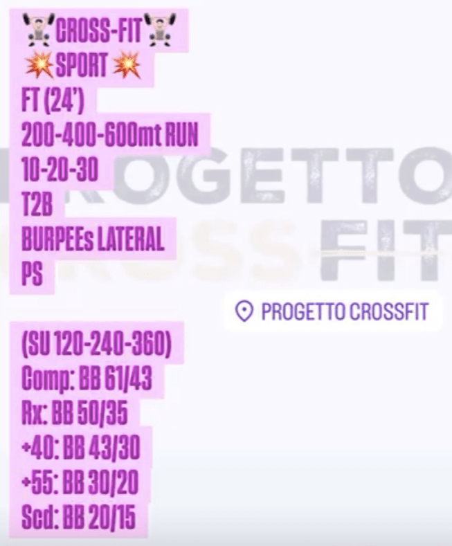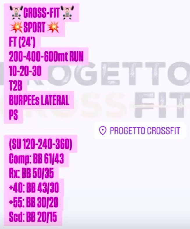 Pubblicato daprogettocrossfit29 aprile 20257 giugno 2025Pubblicato in: Wod Condividi: Fai clic per condividere su X (Si apre in una nuova finestra) X Fai clic per condividere su Facebook (Si apre in una nuova finestra) Facebook Mi piace Caricamento... Correlati