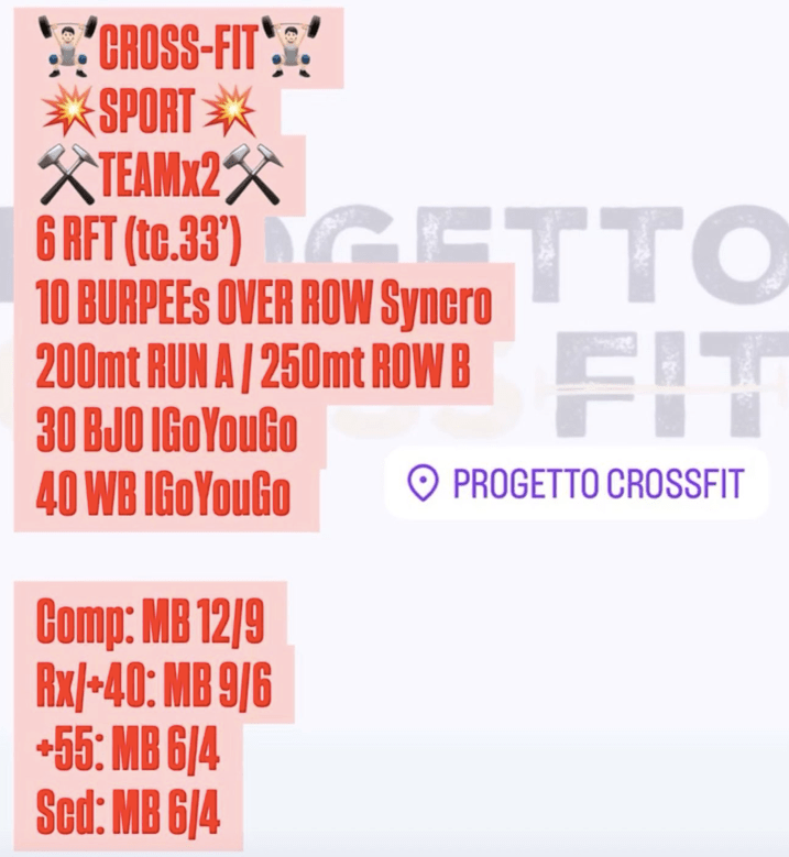 Pubblicato daprogettocrossfit19 Maggio 20257 giugno 2025Pubblicato in: Wod Condividi: Fai clic per condividere su X (Si apre in una nuova finestra) X Fai clic per condividere su Facebook (Si apre in una nuova finestra) Facebook Mi piace Caricamento... Correlati