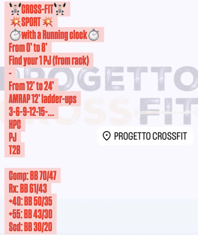 Pubblicato daprogettocrossfit1 luglio 202520 luglio 2025Pubblicato in: Wod Condividi: Fai clic per condividere su X (Si apre in una nuova finestra) X Fai clic per condividere su Facebook (Si apre in una nuova finestra) Facebook Mi piace Caricamento... Correlati