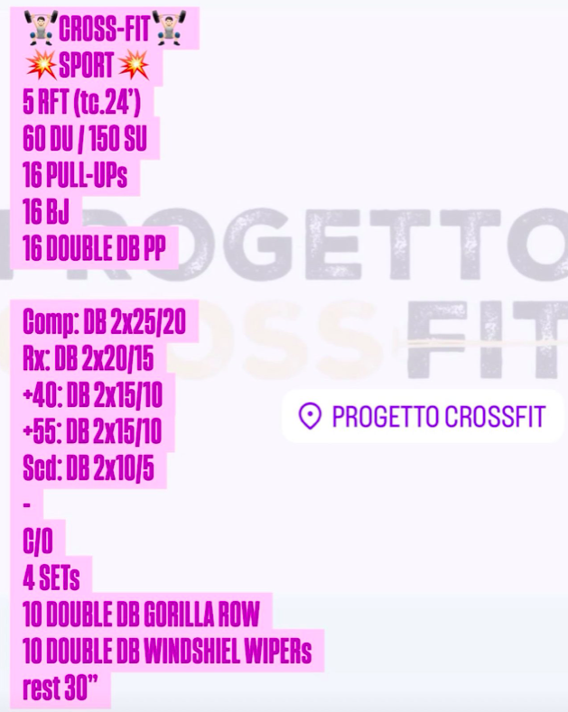 Pubblicato daprogettocrossfit14 luglio 202527 luglio 2025Pubblicato in: Wod Condividi: Fai clic per condividere su X (Si apre in una nuova finestra) X Fai clic per condividere su Facebook (Si apre in una nuova finestra) Facebook Mi piace Caricamento... Correlati