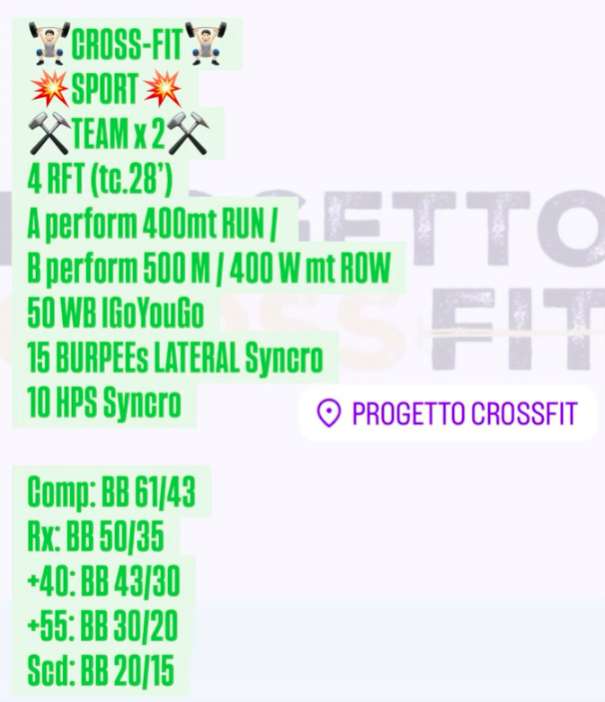 Pubblicato daprogettocrossfit15 luglio 202527 luglio 2025Pubblicato in: Wod Condividi: Fai clic per condividere su X (Si apre in una nuova finestra) X Fai clic per condividere su Facebook (Si apre in una nuova finestra) Facebook Mi piace Caricamento... Correlati