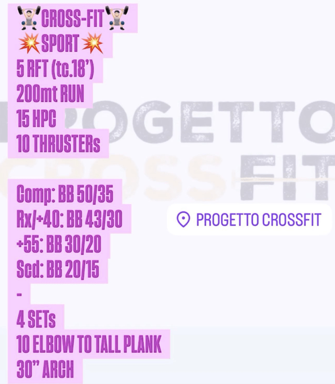 Pubblicato daprogettocrossfit24 luglio 202527 luglio 2025Pubblicato in: Wod Condividi: Fai clic per condividere su X (Si apre in una nuova finestra) X Fai clic per condividere su Facebook (Si apre in una nuova finestra) Facebook Mi piace Caricamento... Correlati