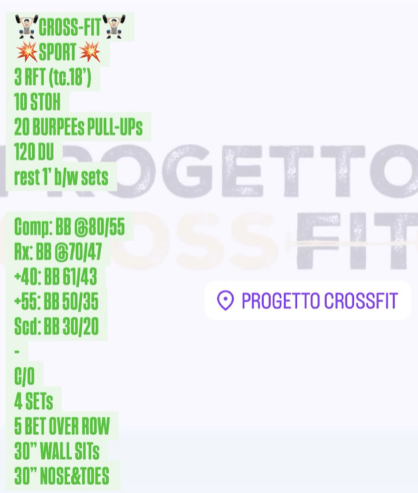 Pubblicato daprogettocrossfit25 luglio 202527 luglio 2025Pubblicato in: Wod Condividi: Fai clic per condividere su X (Si apre in una nuova finestra) X Fai clic per condividere su Facebook (Si apre in una nuova finestra) Facebook Mi piace Caricamento... Correlati
