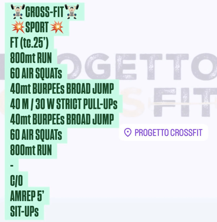 Pubblicato daprogettocrossfit31 luglio 20257 settembre 2025Pubblicato in: Wod Condividi: Fai clic per condividere su X (Si apre in una nuova finestra) X Fai clic per condividere su Facebook (Si apre in una nuova finestra) Facebook Mi piace Caricamento... Correlati