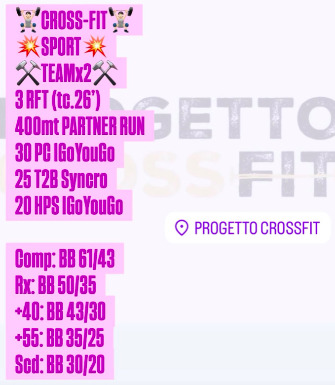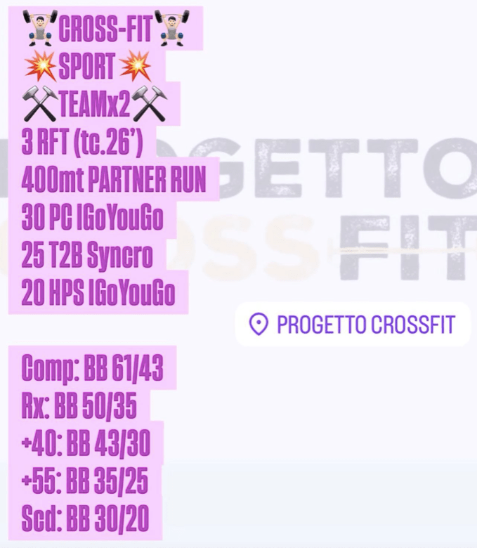 Pubblicato daprogettocrossfit12 agosto 20257 settembre 2025Pubblicato in: Wod Condividi: Fai clic per condividere su X (Si apre in una nuova finestra) X Fai clic per condividere su Facebook (Si apre in una nuova finestra) Facebook Mi piace Caricamento... Correlati