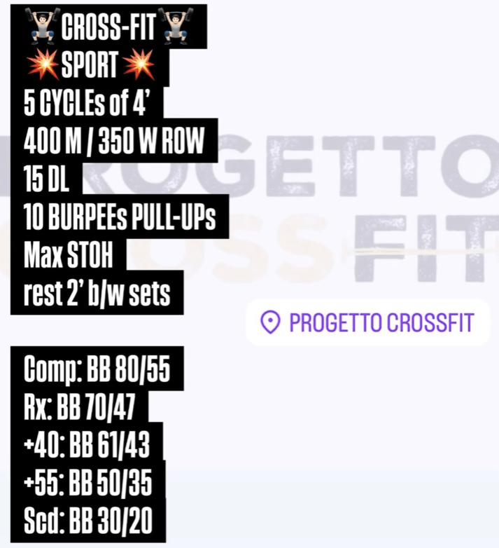 Pubblicato daprogettocrossfit20 agosto 20257 settembre 2025Pubblicato in: Wod Condividi: Fai clic per condividere su X (Si apre in una nuova finestra) X Fai clic per condividere su Facebook (Si apre in una nuova finestra) Facebook Mi piace Caricamento... Correlati