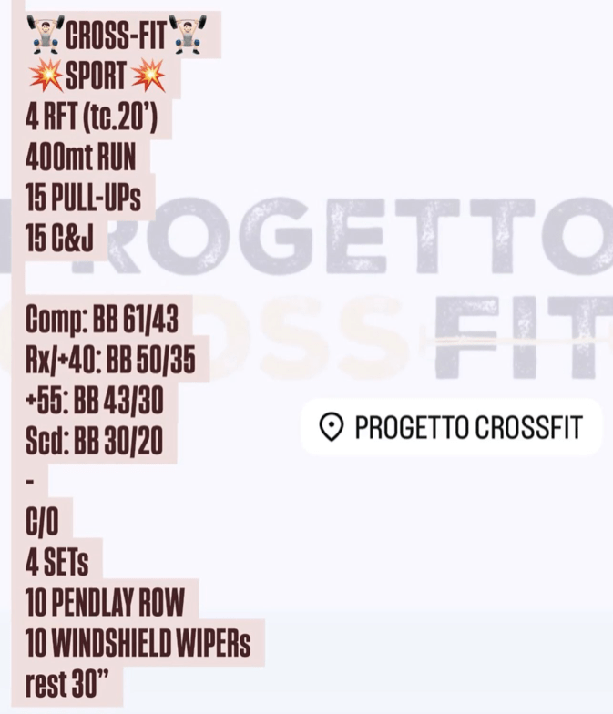 Pubblicato daprogettocrossfit8 settembre 202514 ottobre 2025Pubblicato in: Wod Condividi: Fai clic per condividere su X (Si apre in una nuova finestra) X Fai clic per condividere su Facebook (Si apre in una nuova finestra) Facebook Mi piace Caricamento... Correlati