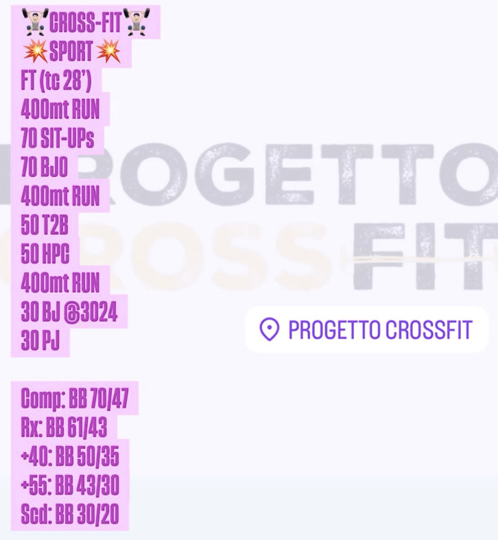 Pubblicato daprogettocrossfit30 settembre 202514 ottobre 2025Pubblicato in: Wod Condividi: Fai clic per condividere su X (Si apre in una nuova finestra) X Fai clic per condividere su Facebook (Si apre in una nuova finestra) Facebook Mi piace Caricamento... Correlati