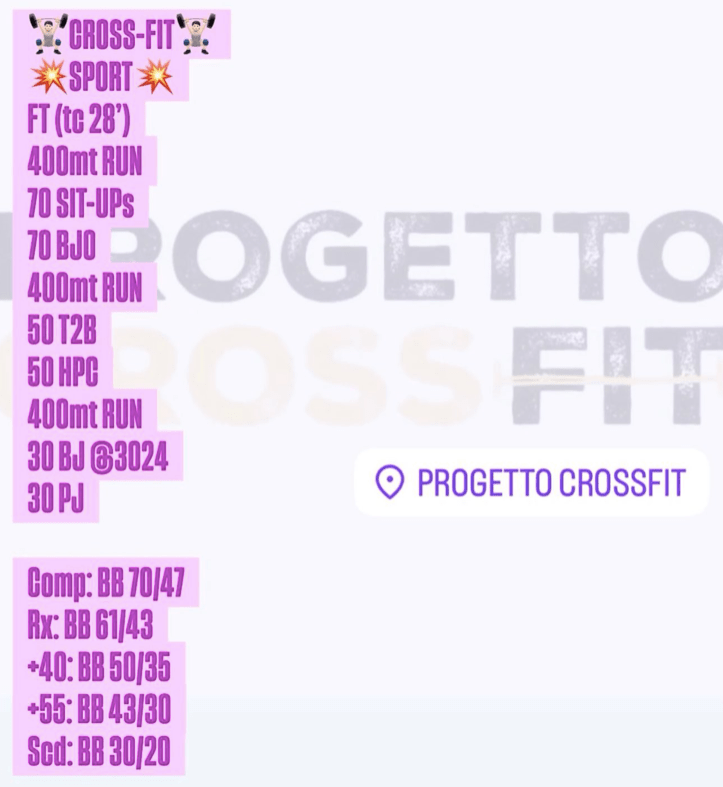 Pubblicato daprogettocrossfit9 ottobre 202523 novembre 2025Pubblicato in: Wod Condividi: Fai clic per condividere su X (Si apre in una nuova finestra) X Fai clic per condividere su Facebook (Si apre in una nuova finestra) Facebook Mi piace Caricamento... Correlati