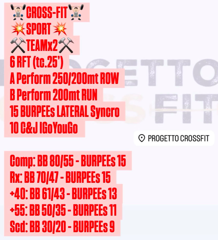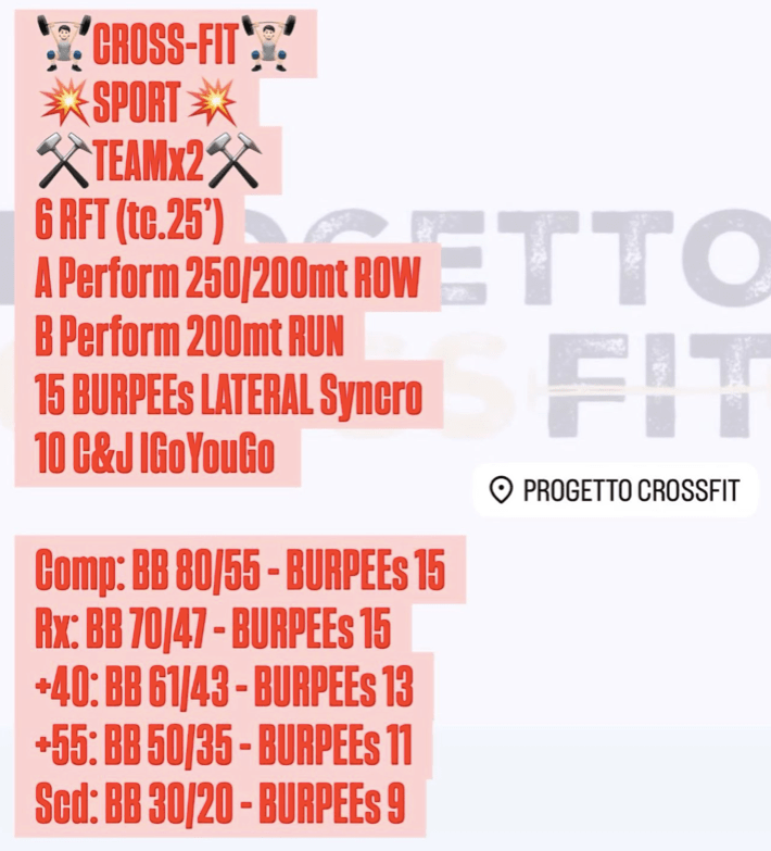 Pubblicato daprogettocrossfit21 ottobre 202525 novembre 2025Pubblicato in: Wod Condividi: Fai clic per condividere su X (Si apre in una nuova finestra) X Fai clic per condividere su Facebook (Si apre in una nuova finestra) Facebook Mi piace Caricamento... Correlati