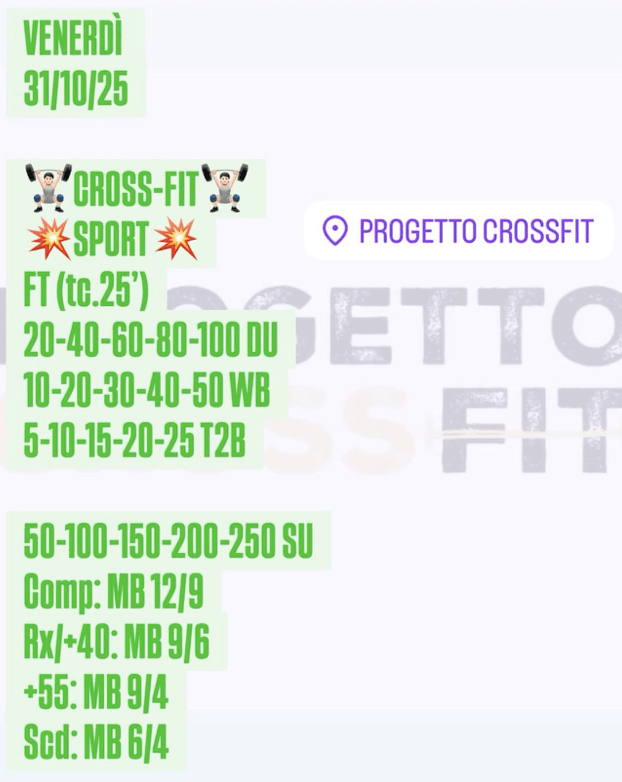 Pubblicato daprogettocrossfit31 ottobre 202525 novembre 2025Pubblicato in: Wod Condividi: Fai clic per condividere su X (Si apre in una nuova finestra) X Fai clic per condividere su Facebook (Si apre in una nuova finestra) Facebook Mi piace Caricamento... Correlati