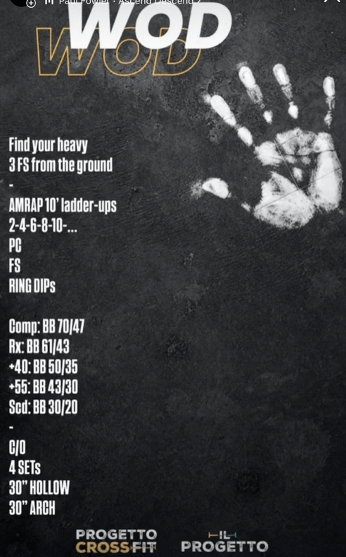 Pubblicato daprogettocrossfit9 febbraio 202620 febbraio 2026Pubblicato in: Wod Condividi: Condividi su X (Si apre in una nuova finestra) X Condividi su Facebook (Si apre in una nuova finestra) Facebook Mi piace Caricamento... Correlati