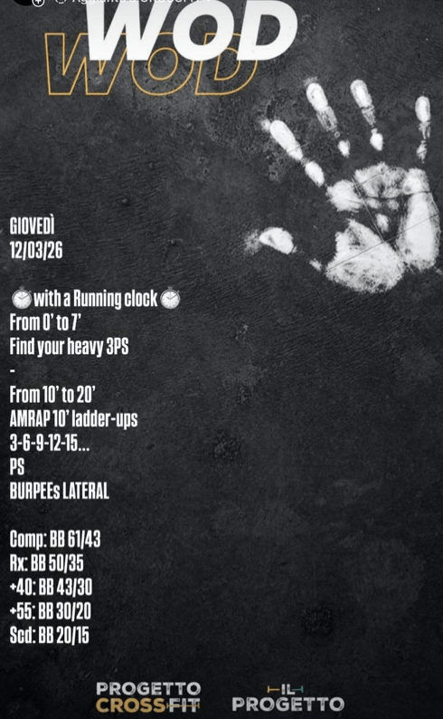 Pubblicato daprogettocrossfit12 marzo 202614 marzo 2026Pubblicato in: Wod Condividi: Condividi su X (Si apre in una nuova finestra) X Condividi su Facebook (Si apre in una nuova finestra) Facebook Mi piace Caricamento... Correlati